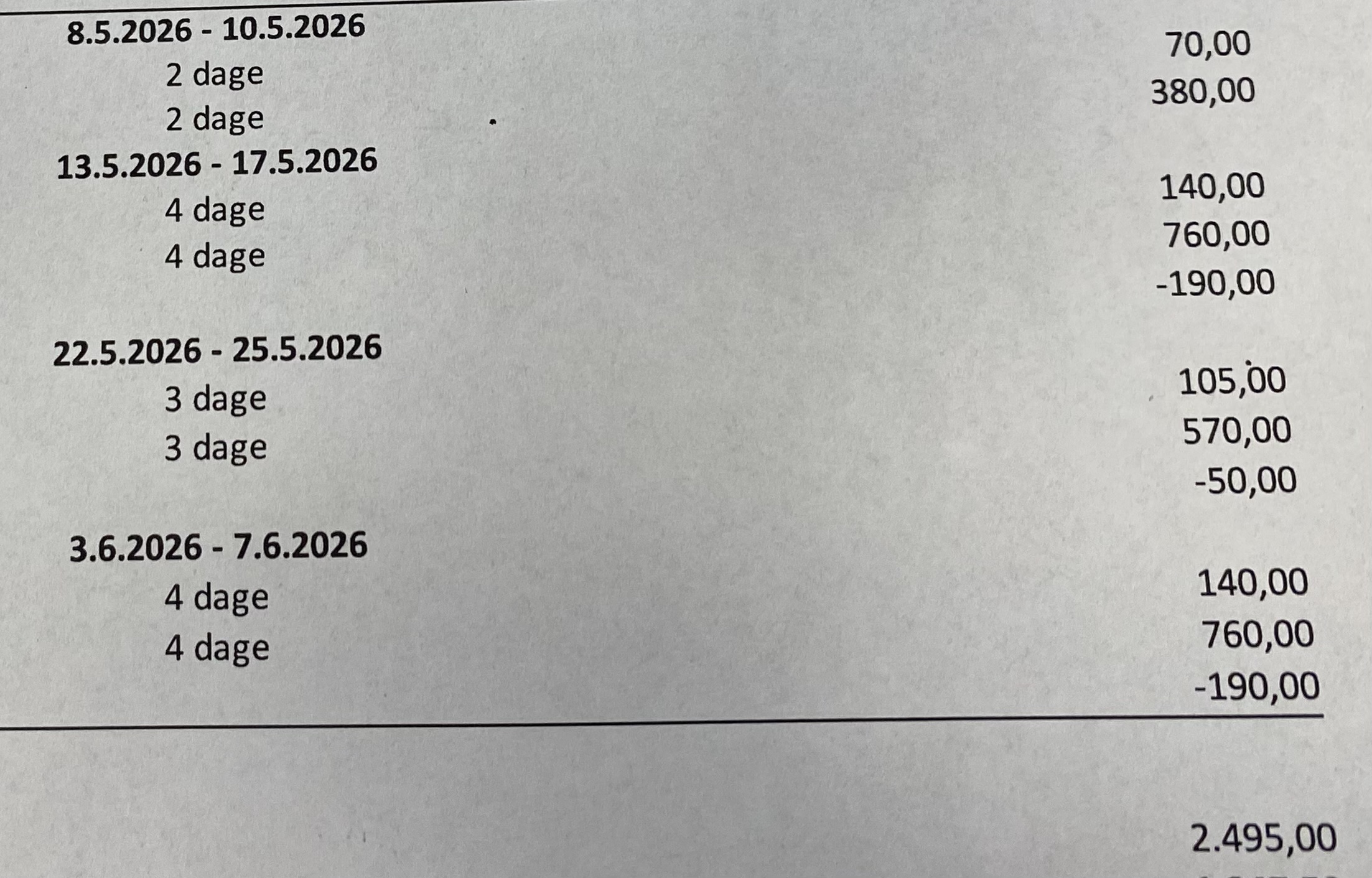 Kr. Himmelfartsferien 4 x Kr. 210,-